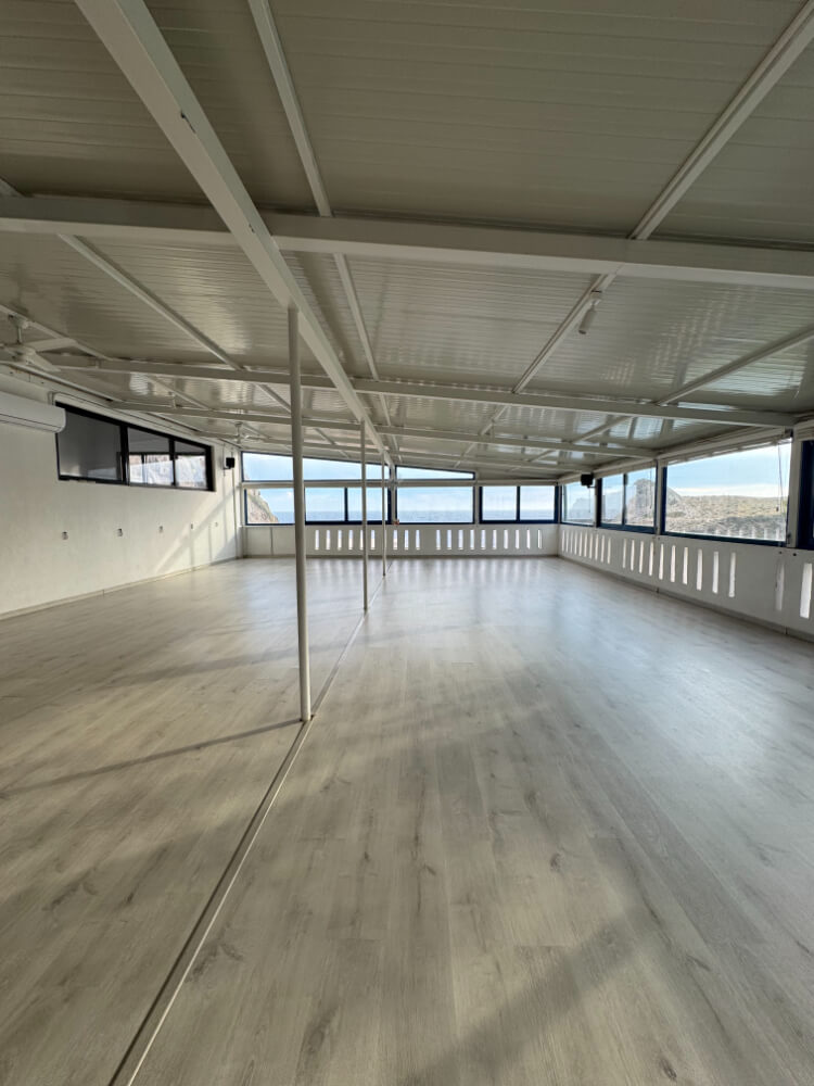 - wunderschöne, geschlossener Yogaraum mit Blick aufs Meer
